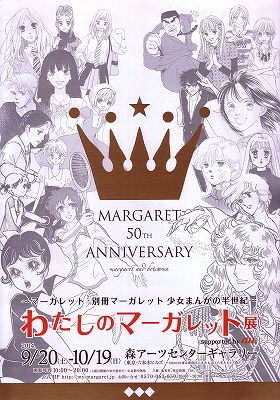 一言で言うととても充実した内容でした。 すごく昔からの代表的なマーガレット作品がそろい踏みしており、自分が子供の時に読んでいたものと、その頃の自分の思い出が重なったりして なんだか懐かしいような、新鮮なような、不思議な気持ちになりました。 昨年だっけ?マーガレット50周年記念の原画展みたいなのを東京丸ビルでやっていて、それも行ったんですけど そことかぶっている展示もありましたね。 原画の展示はいくつか同じものでしたし、たくさんの作家さんの直筆色紙も同じものが飾られていました。 50周年の時は作品をテーマにした料理やイラストをプリントしたテーブルセットがあったりしたんですが 今回は森美術館という事もあって、「展示」に重きをおいた美術的展開となっていました。 まあ全体的には紡木たく先生、ベルバラがかなりの比重を占めていて、どちらかというと古めの作品の展示が多かった気がします。 入ってすぐのスクリーンで映し出される「ラブシーンを集めた動画」はなんかもうキュンキュンしっぱなし… いろんな作品の素敵シーンが次々と音楽にのって映し出されて、もう胸がいっぱいになってしまいました。知らない作品もあったけど、それもなんだか楽しめましたし。 私はいたキスやくらもちふさこ先生の作品もハマってたんですが、音楽にのると素敵だな〜このシーン好きだったな〜と再確認。 そして桃森先生作品はというと、ハツカレの原画の展示と、天井から大きな垂れ幕みたいなものに5作品くらいから素敵セリフが書かれて飾られていたブースで ハツカレの「あなたばかりになってしまいたい」というセリフがチョイスされて展示されていました。 名前を出してこないあたり、見る人が自分におきかえる事ができるのでなかなかニクいチョイスです。 一つ不満を言うとすると私は悪ラブとか菜の花の彼からの展示も見たかったなあという事ですね。ハツカレしかなかったので。 でもそれぞれの作家さんから1作品展示、みたいな感じだったので仕方ないかな。 そしてカラー原画の展示もなくモノクロ原稿の展示だけだったということ。 でもたぶんこれは、他の作家さんのモノクロしかない方とかからも考えて 今回はデジタルで塗っているカラーは一つも展示されていなかったと言えるでしょう。 50周年の時はハツカレのカラーとかもあったんですが、今回は美術館での展開という事もありアナログに限定されたのだと思います。 そしてブースで売られているグッズ(とくにポストカード)も当然、展示されているアナログカラー原稿をポストカードにしたものしかなく、ハツカレのポストカードはなかったんですよね〜… 桃森先生のデビューコミック(ブラスラブ)の表紙はすでにデジタルだと思われますから、連載作品も当然そうですよね。でもグッズほしかったな。 で、買ったものが一つ、私のマーガレット展公式目録「LOVE and…」です。 これすごく読み応えがあった! マーガレット、別冊マーガレットを代表する先生方のそれぞれの展示原稿とプロフィール。 時代の流れとともに変わって行く作品の流行の変化みたいなものも感じられるし、巻末の藤本由香里さんの解説コラムもとてもわかりやすかった。 こうして見ると、1作品だけではなくいくつもヒット作を出すという事がいかに凄い事かよく分かります。この冊子に載っている作家さんたちはほとんどの方が1作品で終わらず、2つ以上のヒット作を出されている方ばかりなんですよね。 ちなみに桃森先生のページ。見開きで4枚の原稿が収録されてます。トーンの一部とか劣化して黄色くなってたり、原稿のはしっこにペン先の試し書きみたいなクルクル線がいっぱいあったりして面白いです。 絵も今とぜんぜん違ってますね。こうして見ると時代に合わせて変化させているのが分かり、努力されているんだなあと思ったりしました。 そして冊子の巻頭に折り込みカラーで歴代マーガと別マの表紙がずらり…! エースを狙えとか花より男子、メイちゃんの執事などの新連載時の表紙が載ってたり。 桃森先生の表紙もありましたよ!ここはハツカレじゃなくて悪ラブでした! この時の表紙はたぶんコミック10巻くらいの時ですね。裸のマリアと羽がすごく奇麗で、色も鮮やかで今見ても好きだな〜懐かしいな〜。 行けなかった人はこの冊子を見るだけでも価値ありだと思います。 展示されてる原稿ものってるし。プロフィールとかも細かくてすごく分かりやすい。